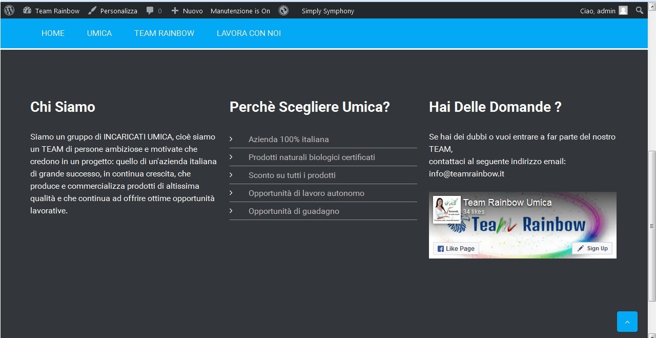 * Partiamo dalla parte in basso, (nella pagina index) dove nella prima immagine vedete (zona footer) con testo e link facebook